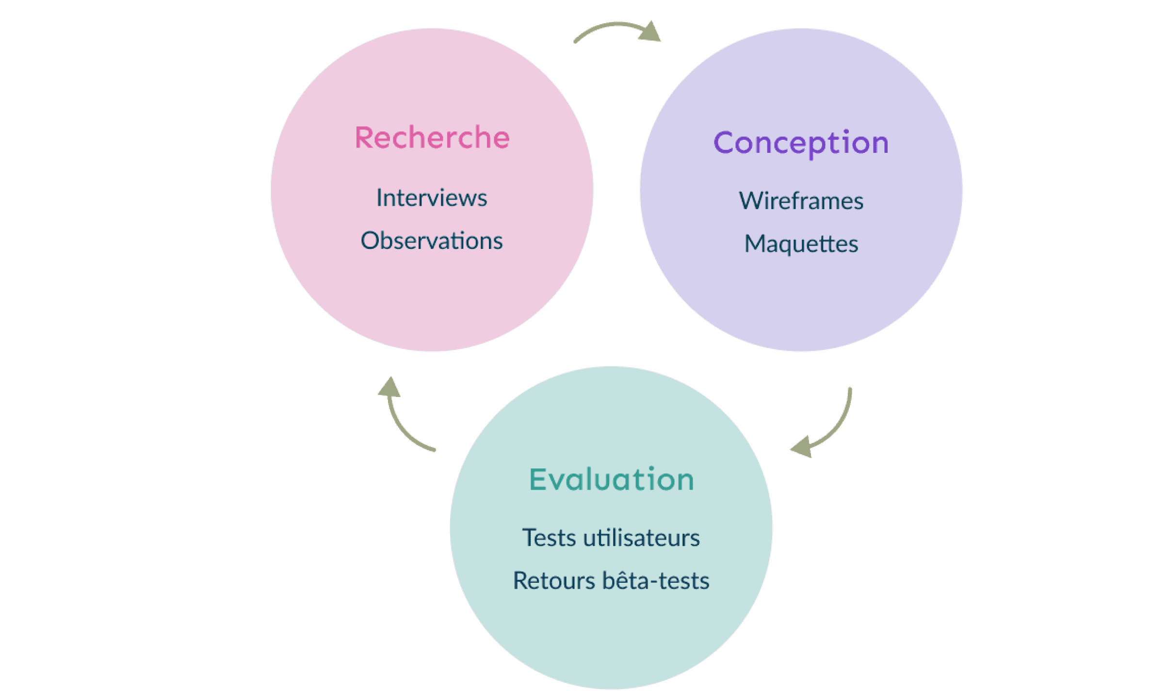 Pendant un an, j'améliore l’existant et conçois de nouvelles fonctionnalités, grâce à des itérations Recherche / Conception / Tests.