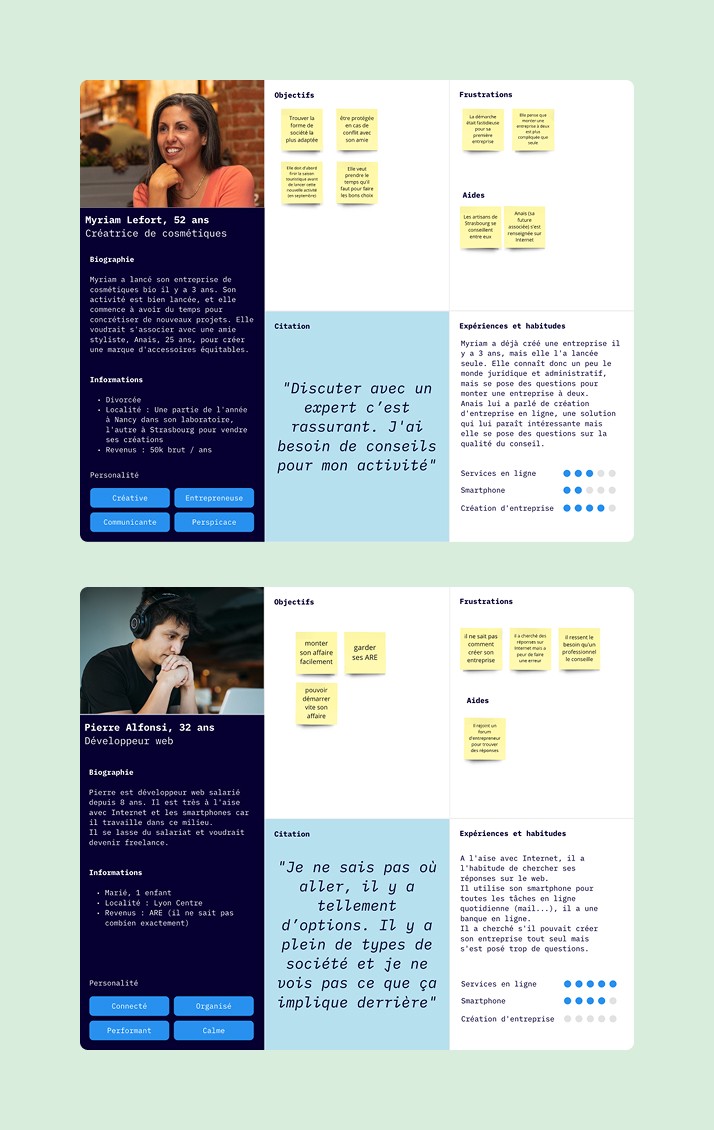 Définir des personas pour les profils de clients, car selon leurs connaissances juridiques et entrepreneuriales, ils n'ont pas les mêmes besoins