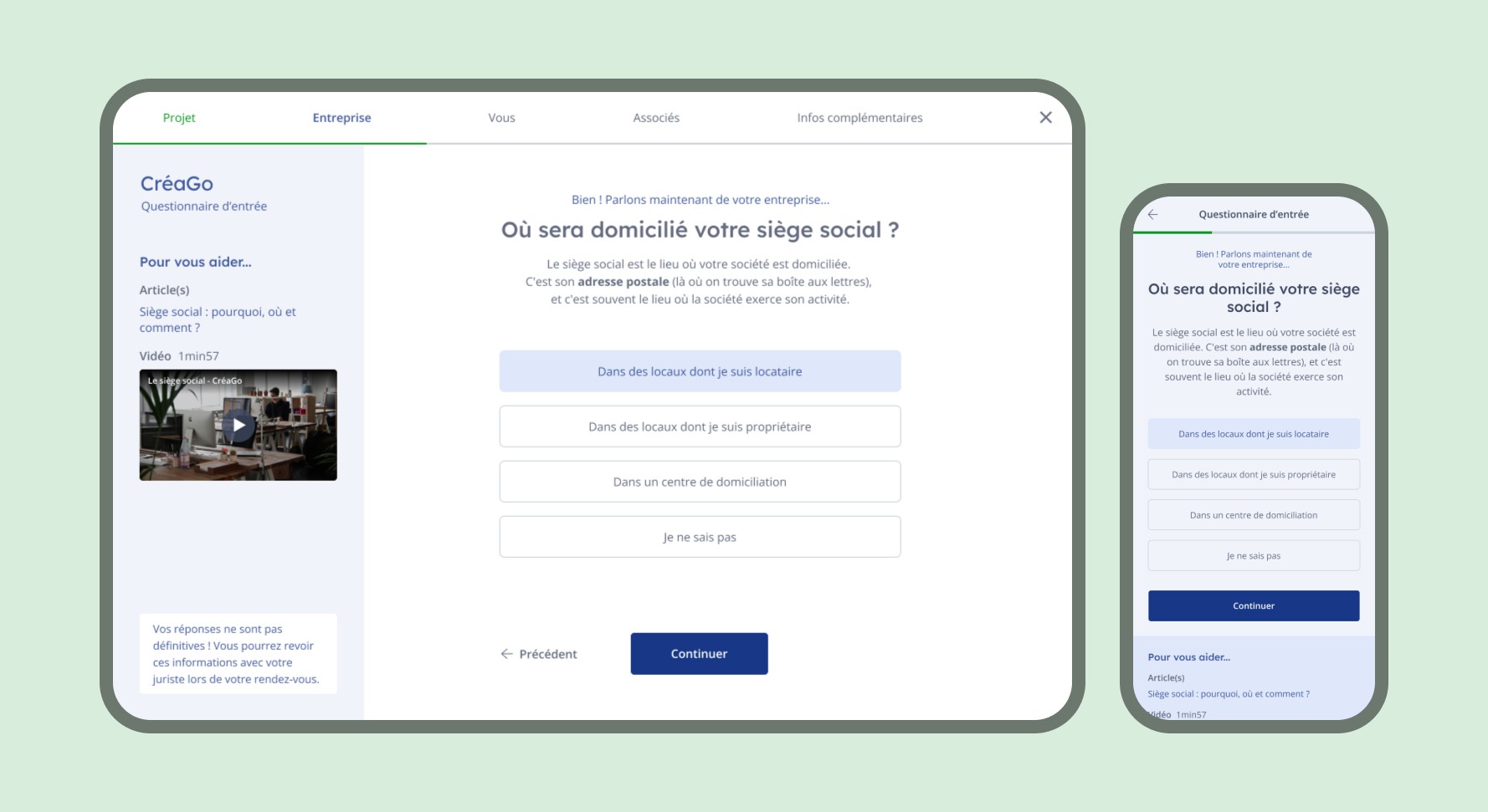 Un parcours qui doit être aussi fluide pour les deux personas clients : ceux qui savent ce qu'ils veulent créer, et les néo-entrepreneurs