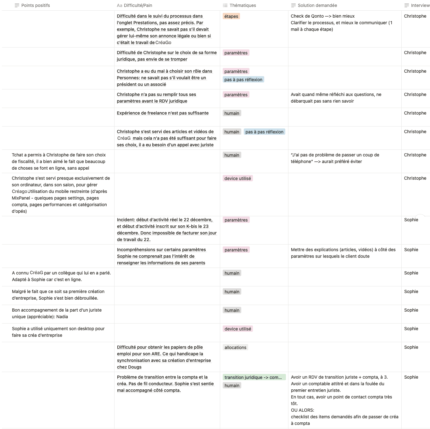 Notion, pour l'analyse des interviews et la gestion de projet