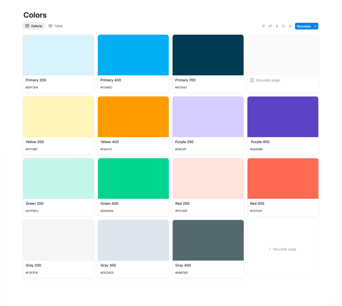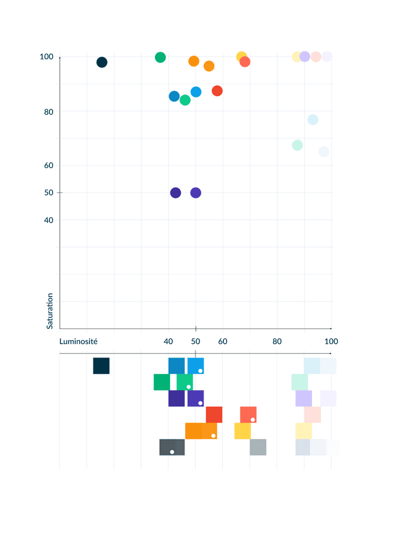 Conception d'une nouvelle palette, avec une numérotation cohérente et l’ajout des couleurs manquantes.
